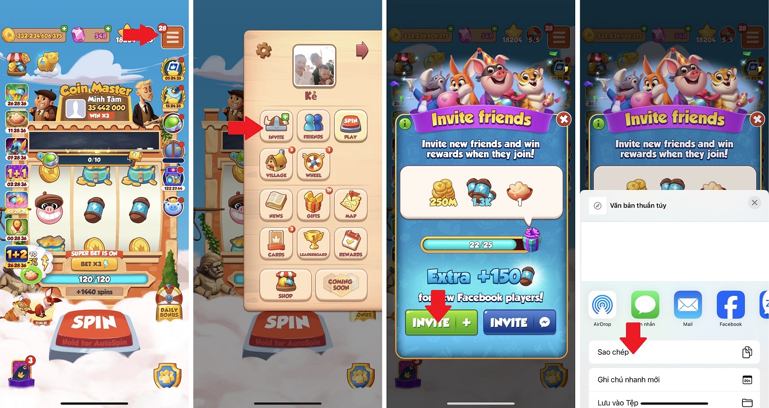 Các bước lấy mã mời trong game (Link mời bạn bè)